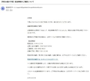 件名は「【明日お届け予定】配送情報のご確認について」となっていました。
