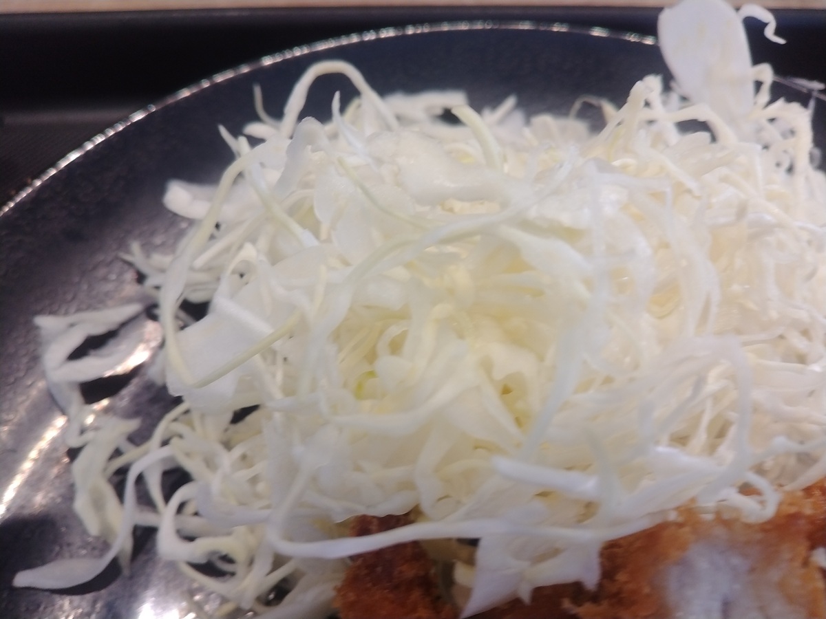 とんかつを食べるときには調味料もいろいろありますが、今回は塩がついてきたのでその流儀に従い塩で食べました。