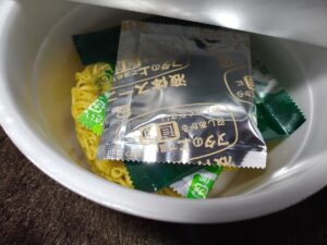 2種類のスープの素は後入れ、先に入れるのはこのうちかやくのみです。