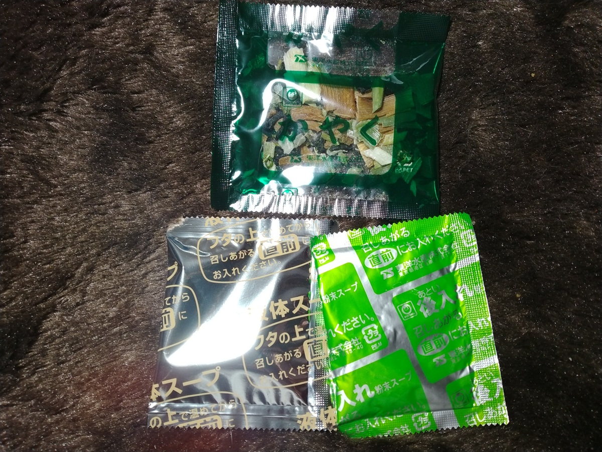 開封してみると、麺の上に小袋がいくつか乗っています。