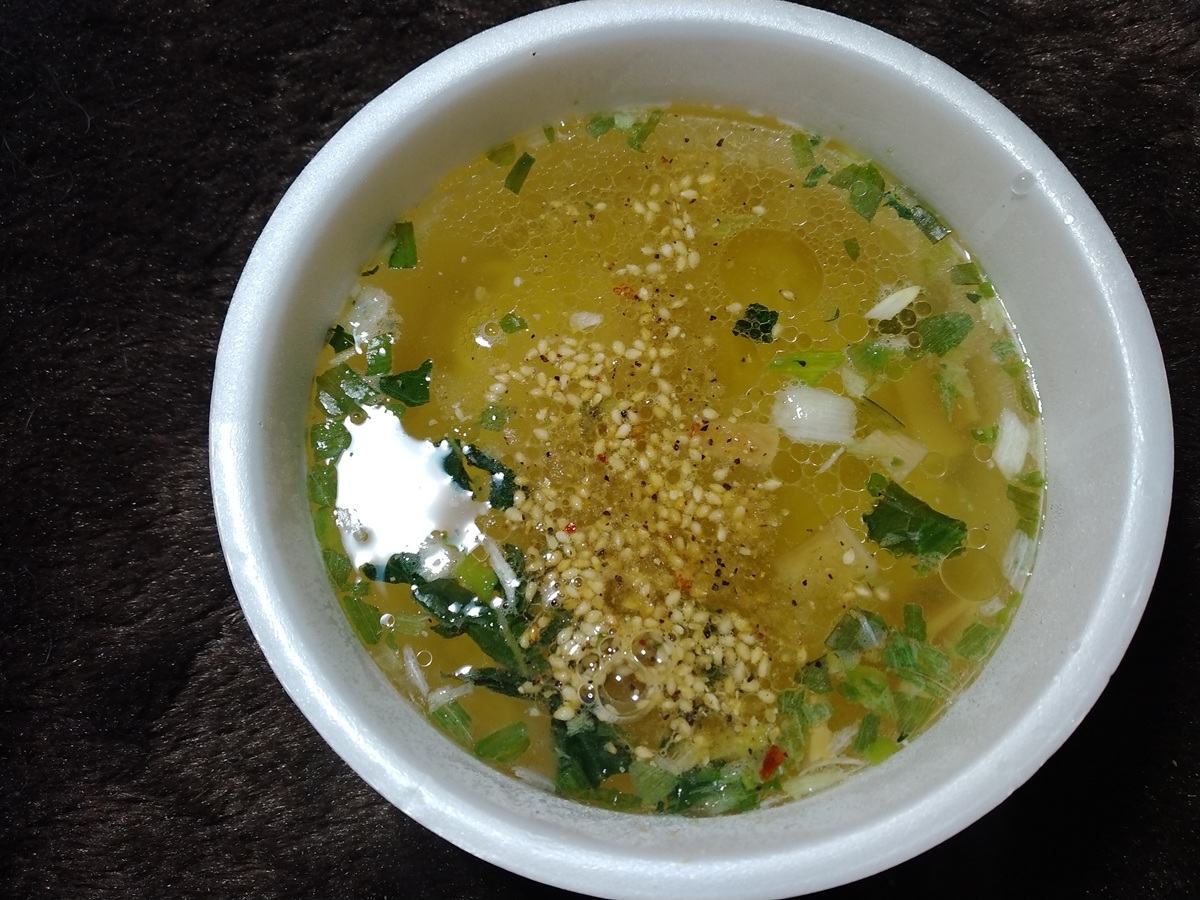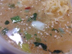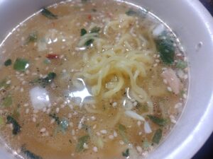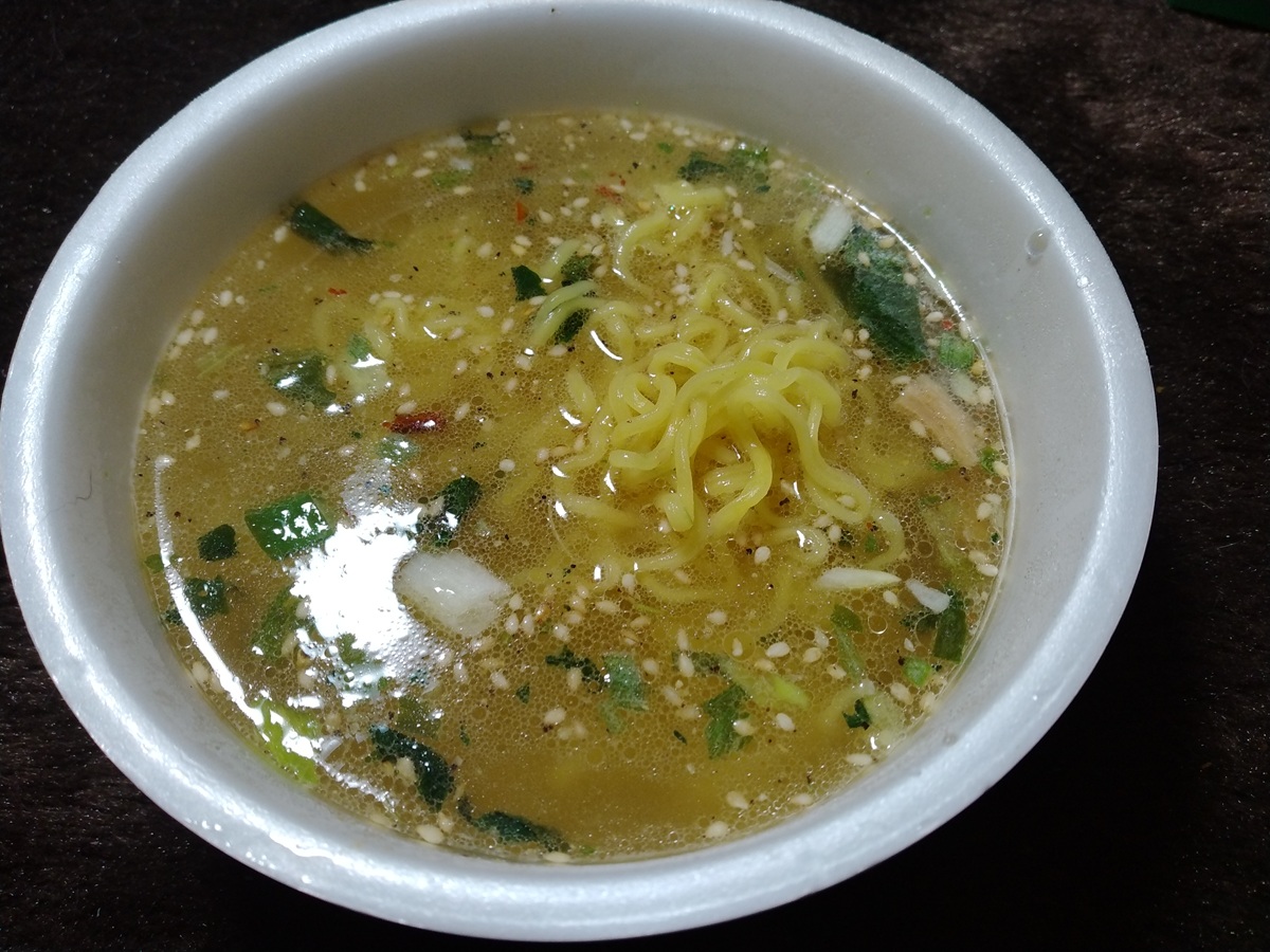 ねぎ、シナチク、ゴマといったトッピングが入っている鶏だし塩。