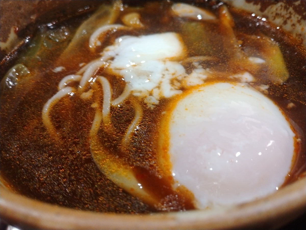 ナス、ねぎ、ホウレンソウ、ひき肉などが入っており、ピリ辛仕上げとなっていますね。