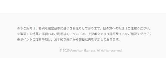 件名:アメリカン・エキスプレスから、特別なベネフィット進呈に関するお知らせ