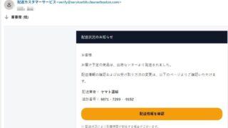 注意喚起 配送カスタマーサービスを名乗る「【配送準備状況のお知らせ】お受け取り前のご案内」にご注意を