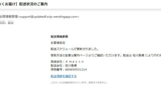 注意喚起 出荷情報管理を名乗る「【まもなくお届け】配送状況のご案内」というメールにご注意を 出荷情報管理を名乗る不審なメールが出回っています今回は出荷情報管理を名乗る不審なメールを受信しましたので、公開させていただきます。件名は「【まもなくお届け】配送状況のご案内」となっていました。どんなメールだったのか、ご覧ください。メール本文... 2026.04.04 注意喚起